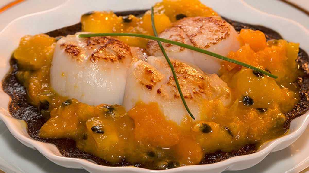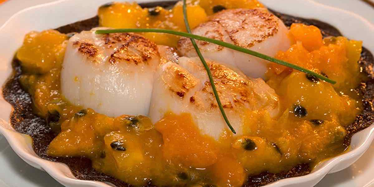 Come preparare le capesante reali al sanguinaccio con salsa esotica?