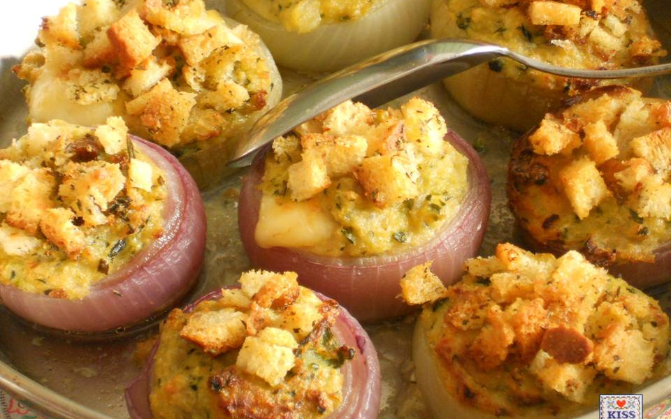 Come fare le cipolle gratinate ripiene di zucchine e mozzarella?