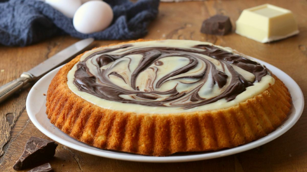 La morbida crostata ai due cioccolati è pronta per essere gustata.