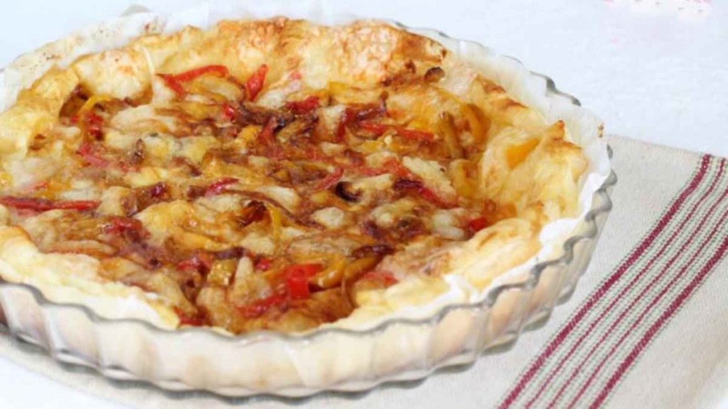 Cuocere la torta salata peperoni e formaggio in forno caldo in modalità statica per 22-24 minuti.