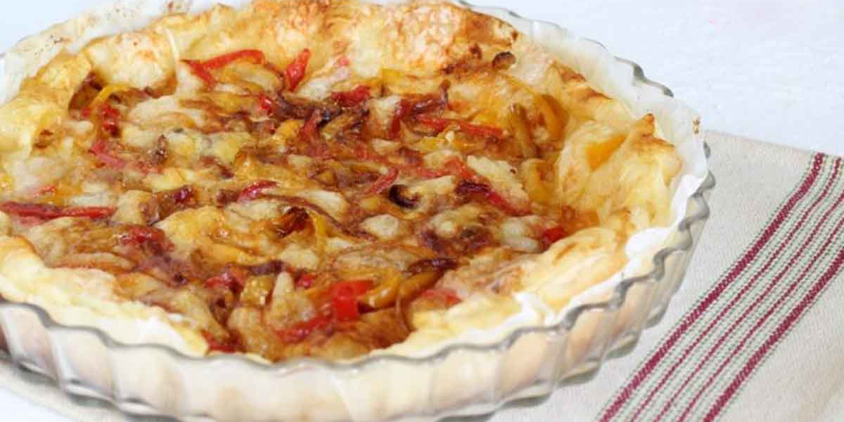Distribuire i peperoni fino a coprire il fondo della quiche.