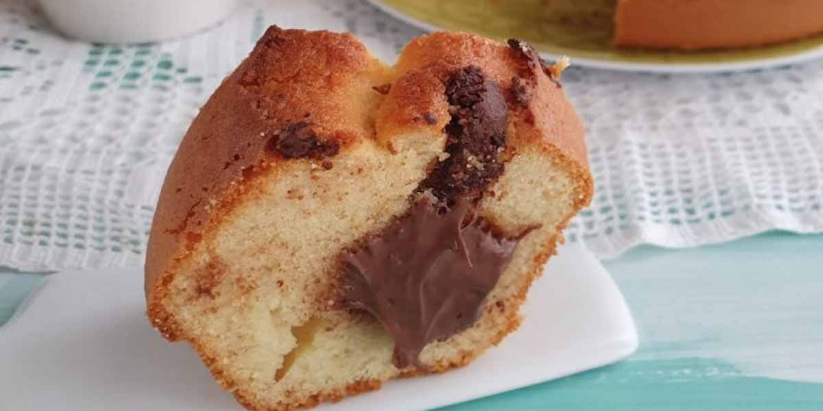 Versateci dentro il composto e aggiungete sulla superficie qualche cucchiaio abbondante di Nutella.