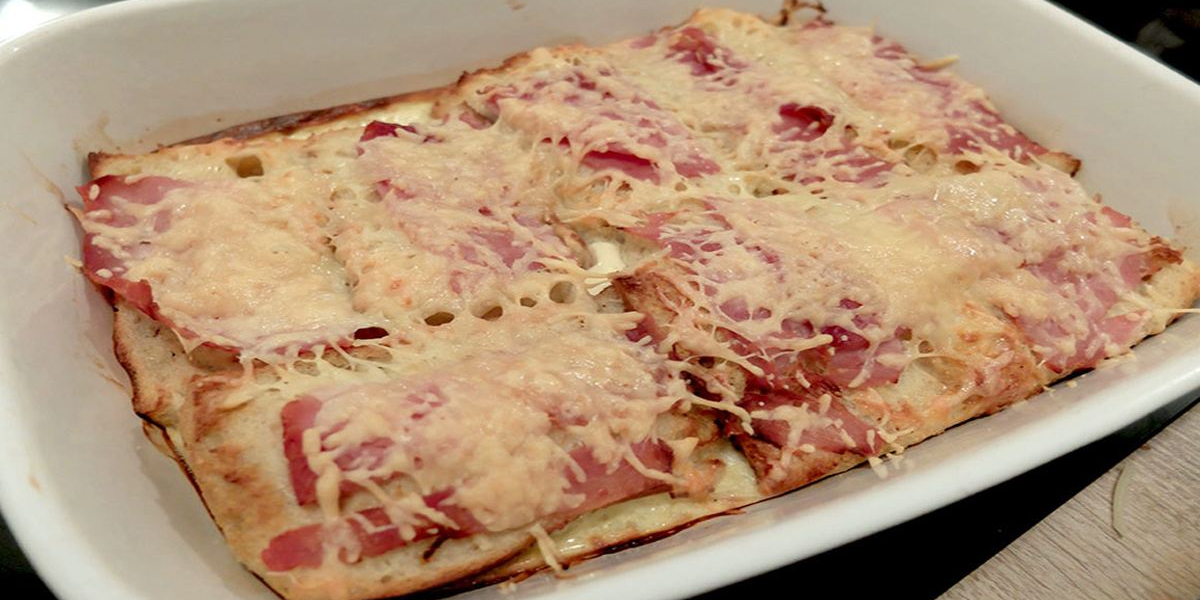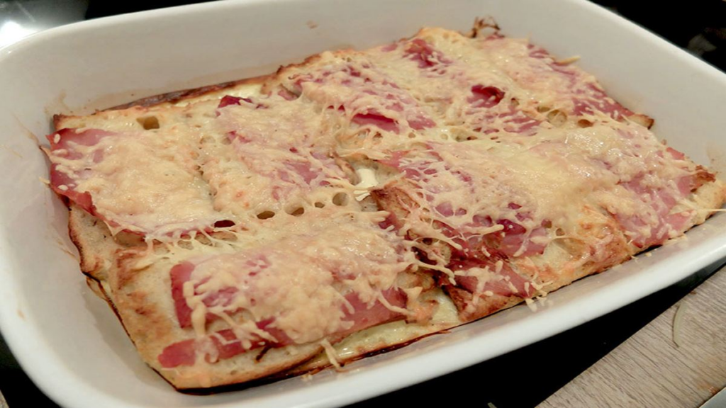 Prendete una pirofila e disponete il pane sul fondo. Coprire con il composto di latte e uova. Aggiungere il prosciutto bianco e l’Emmental. Cuocere per 20-30 minuti. Il French toast con emmental e prosciutto è pronto per essere gustato.
