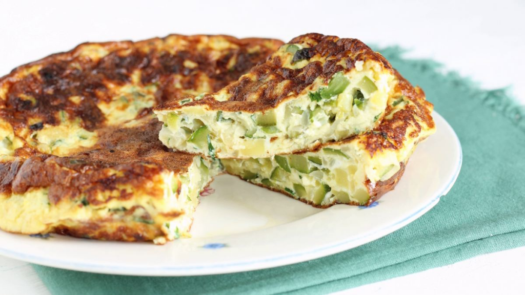La frittata di zucchine e parmigiana è pronta per essere servita.