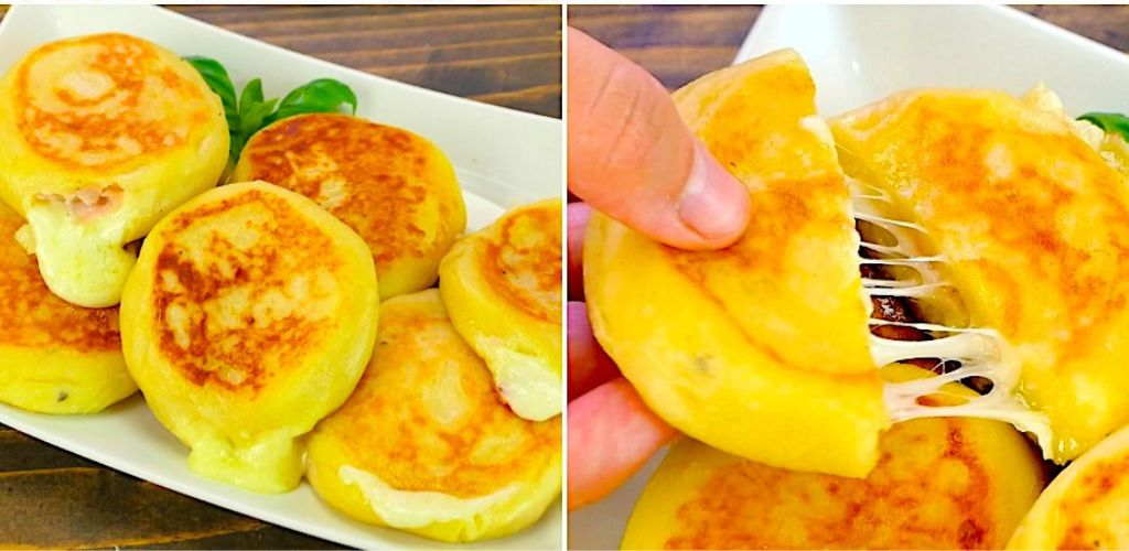 - Versa dell’olio d’oliva in una padella e cuoci ogni pancake per 5 minuti per lato.