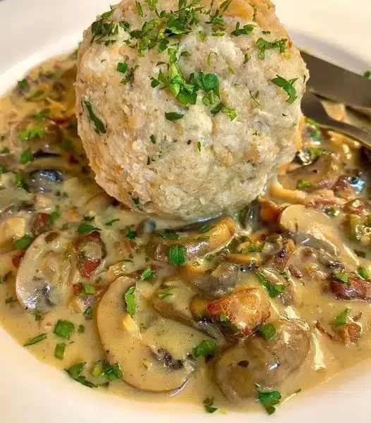 Scaldate una padella con il burro e fate soffriggere lo scalogno, il resto dell’aglio e i funghi. Aggiungete le erbe rimanenti e sfumate con il vino bianco. Versate la panna e, se necessario, un po’ di latte e fate bollire un po’. Condire a piacere e poi servire con gli gnocchi.