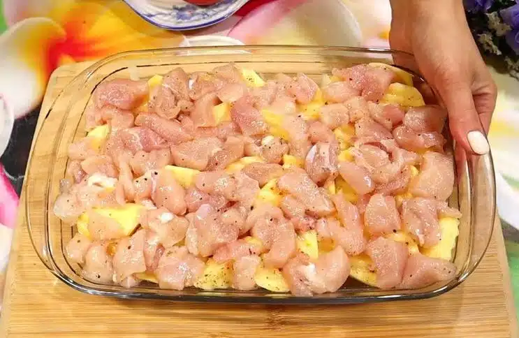1. Per prima cosa lavate le patate e fatele bollire in acqua per circa 20 minuti. Poi sciacquate le patate, sbucciatele e lasciatele raffreddare. Lavate la carne, asciugatela e tagliatela a dadini, quindi friggetela tutta nell’olio caldo per circa 5 minuti, aggiustate di sale e pepe.