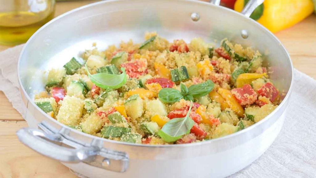 Come fare il gratin di peperoni e zucchine saltati in padella?