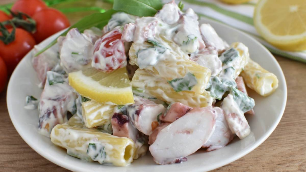 Mescolare ancora per amalgamare e lasciare riposare in frigorifero per 30 minuti o 1 ora. La pasta fredda di polpo è pronta per essere gustata.