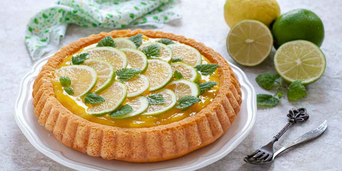 Tagliate il lime a fettine sottili e disponetele in superficie.