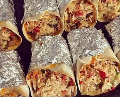 ora è possibile fare i kebab. Cospargiamo ogni tortilla con 1 cucchiaio di salsa. Sopra, cavolo tritato, pomodori, cetrioli, carne macinata e 1/2 cucchiaio di salsa. Arricchiamo i lati del kebab e lo avvolgiamo.