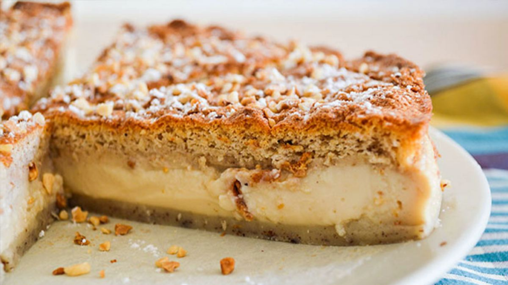 Imburrare uno stampo da 20-24 cm e versarvi tutto l’impasto. Livellare la superficie utilizzando una spatola. Preriscaldare il forno a 150 gradi e cuocere la magica torta pralinata per 50 minuti. Aspettate che sia freddo prima di sformarlo. Decorarlo con gocce di pralinato e zucchero a velo. Conservare in frigorifero per alcune ore prima di servire.