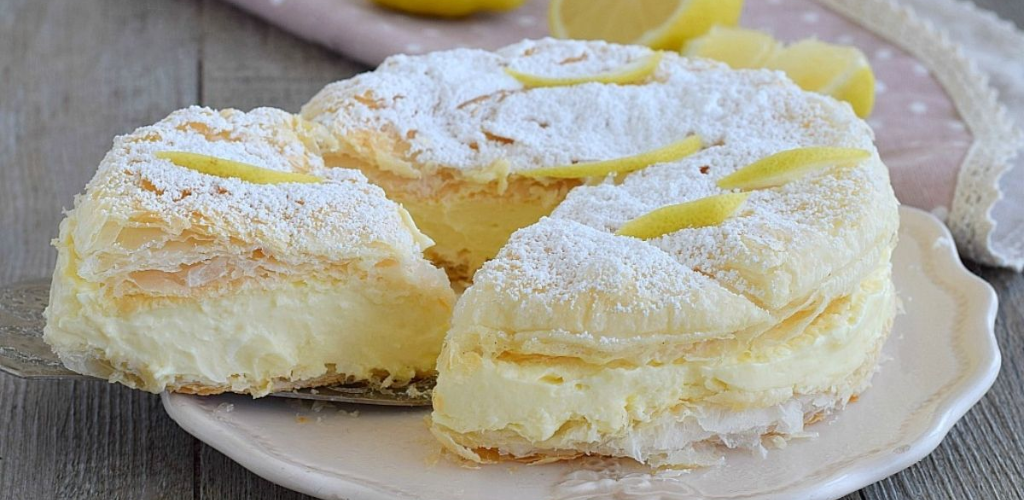 Millefoglie con crema al limone, un dolce semplice ma molto goloso e profumato, pochi ingredienti tutti facilmente reperibili per questa delizia: pasta sfoglia, panna liquida e crema all’acqua al limone. Un dolce che si scioglie in bocca, e il contrasto della croccantezza della pasta sfoglia con la morbidezza della crema lo rende unico.