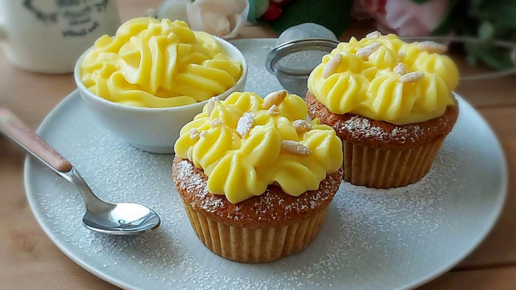 Muffin allo yogurt con panna e pinoli