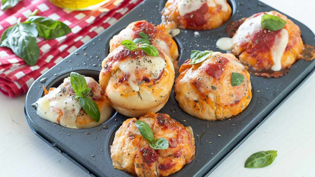 Cuocete i muffin stile pizza in forno statico a 180°C per 20/25 minuti. Servire caldo.