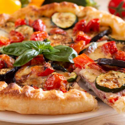 Gustosa crostata di verdure grigliate e prosciutto cotto
