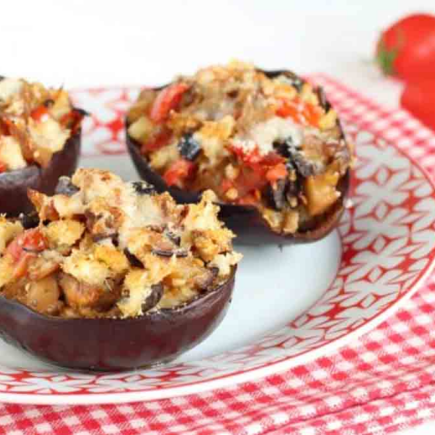 Melanzane ripiene di pomodoro e pane salato alle olive