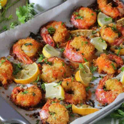 Gamberi impanati con prezzemolo e limone, buonissimi
