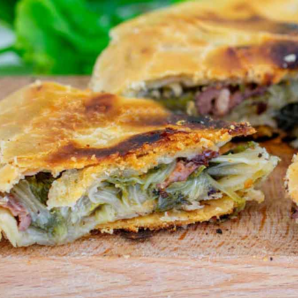 Pizza ripiena di scarola e acciughe: impasto croccante e ricca farcitura