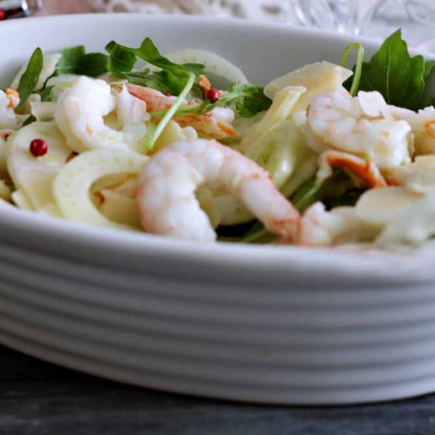 Insalata di gamberi con finocchi e rucola: leggera e succulenta