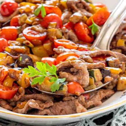 Straccetti di vitello con sontuose verdure