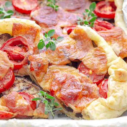 Crostata di melanzane con pomodorini e gustosa scamorza