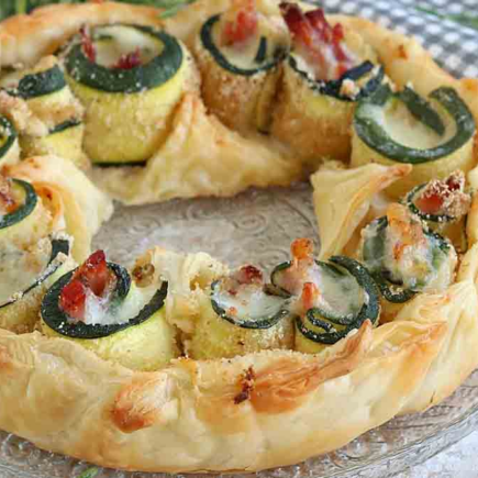 Preparazione: 30 minutiCottura: 40 minutiPorzioni: 6 persone ingredienti2 zucchine1 rotolo di pasta sfogliaProsciutto a listarelleMozzarellaSaint-MôretPangrattatoSaleOlio …