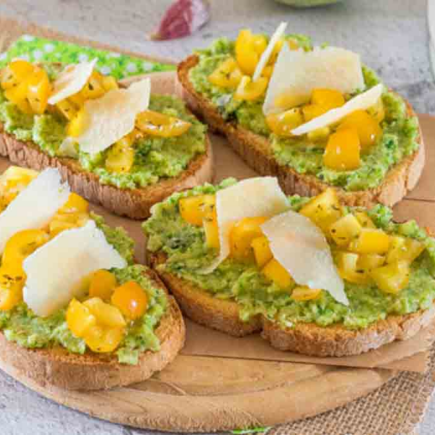 Preparazione: 15 minutiCottura: 4 minutiPorzioni: 4 bruschette ingredienti4 fette di paneOlio d’oliva100 g di pomodorini …