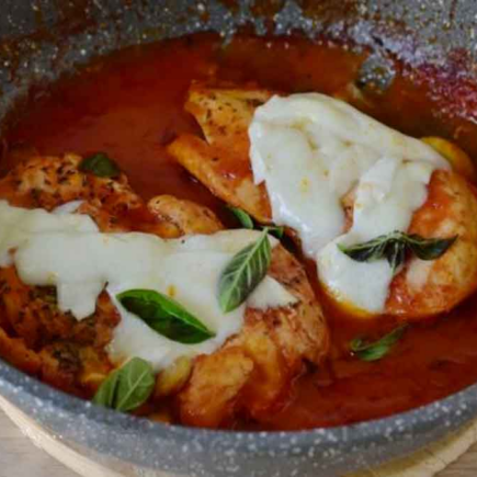 Pollo con salsa di pomodoro e mozzarella dal gusto ricco