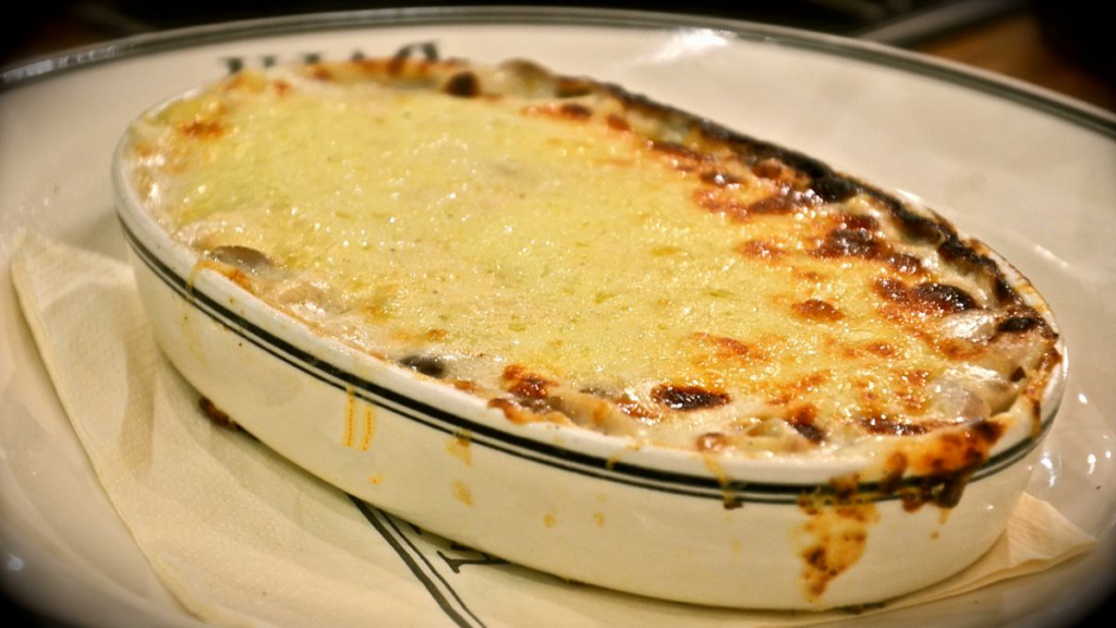 Sbucciare i tuberi, sciacquarli e affettarli sottilmente. Preparare il gratin disponendo una fila di patate sul fondo della pirofila. Ricoprire con la besciamella, poi con i funghi. Ripetere il procedimento rifinendo con il parmigiano grattugiato in superficie. Preriscaldare il forno a 180 gradi e cuocere la gratinatura per mezz’ora. Le patate ed i funghi gratinati con la besciamella sono pronti per essere serviti.