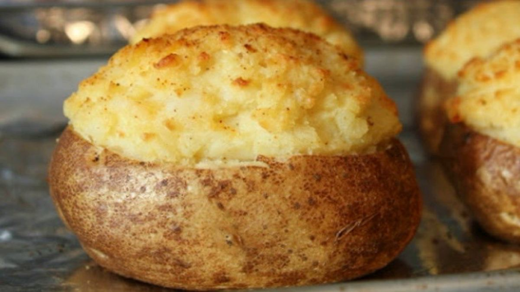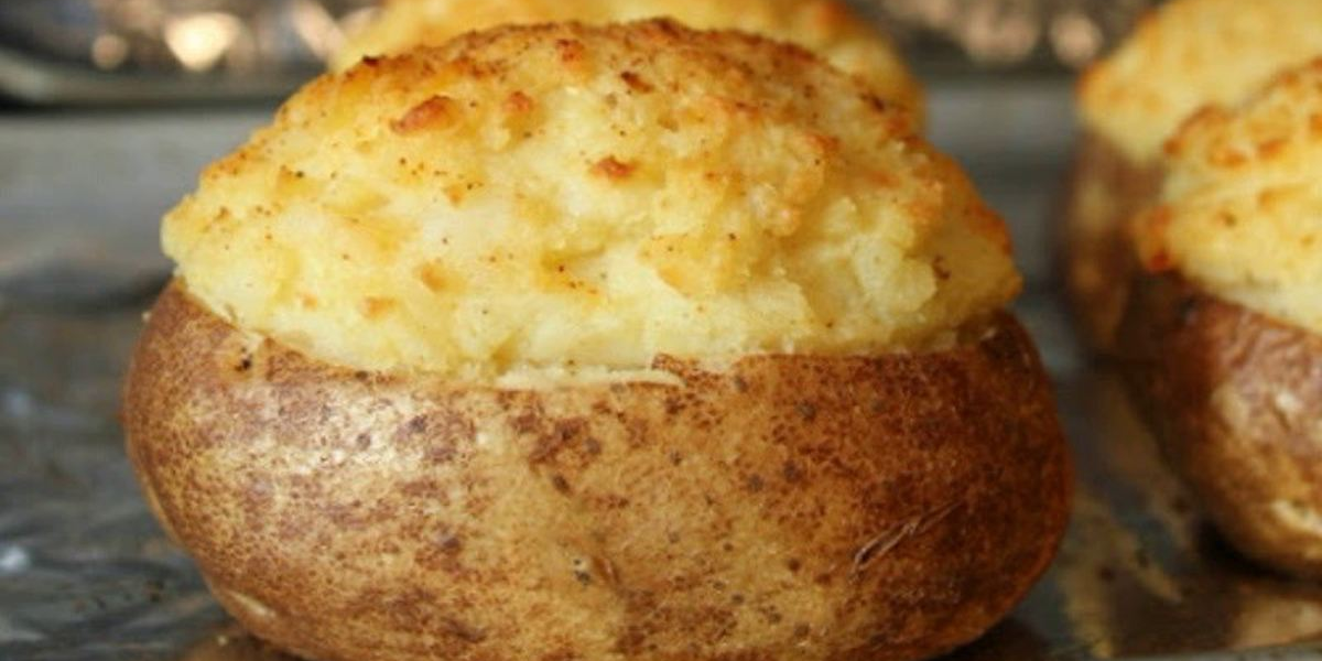 Lavare accuratamente le patate e adagiarle su una teglia rivestita di pellicola. Strofinateli con un po’ d’olio. Cuocere in forno caldo a 200 gradi per 60 minuti. Togliere dal forno e lasciare raffreddare. Eliminate la sommità ed eliminate quanta più polpa possibile aiutandovi con un cucchiaio.