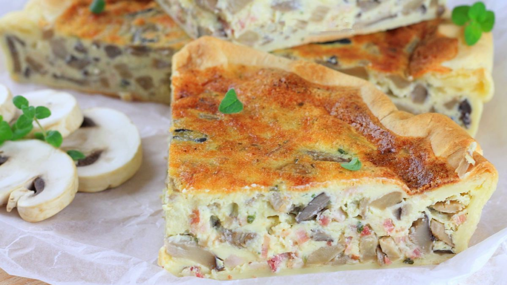 Cuocere in forno statico preriscaldato a 180°C per circa 40/45 minuti. La quiche funghi e pancetta sarà pronta quando la superficie sarà dorata. Aspettate che si raffreddi un po’ prima di sformare e servire.