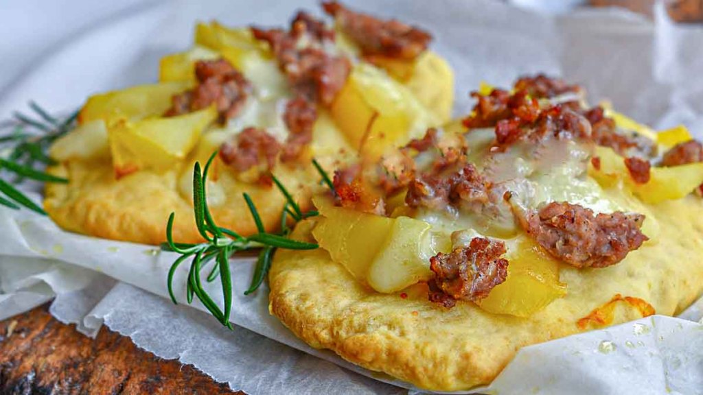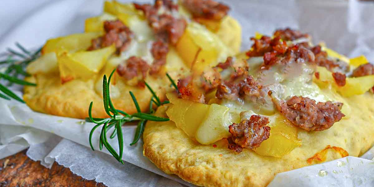 Le schiacciate con salsicce e patate sono pronte
