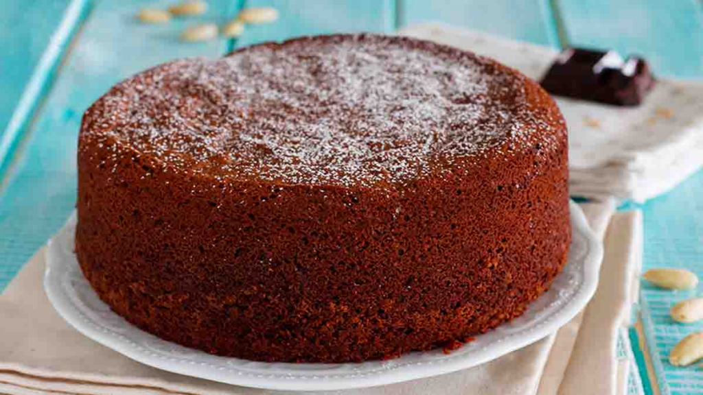 Spolverate di zucchero a velo e servite la torta di mandorle e cioccolato fondente.