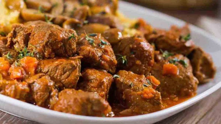 Lo spezzatino di vitello al vino rosso è micidiale. E’ ottimo per soddisfare i vostri ospiti. Ho guarnito questo piatto con aglio, rosmarino e alloro. Questi condimenti classici aggiungeranno un sapore eccezionale alla tua carne e la faranno sembrare bellissima. La fusione di tutti gli ingredienti di questo piatto è spettacolare . Impossibile resistere a tanta meraviglia. Leggi la ricetta e mettiamoci subito all’opera! Ci vorranno appena 10 minuti per completarlo. D’altra parte, è necessario attendere almeno un’ora di cottura affinché la vostra carne di vitello sia perfettamente morbida e succosa .