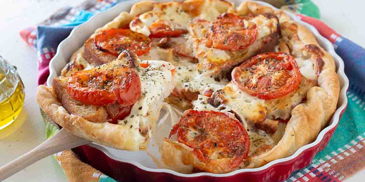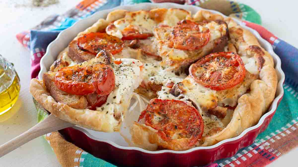 Come fare la crostata al pomodoro con pane e 2 formaggi?