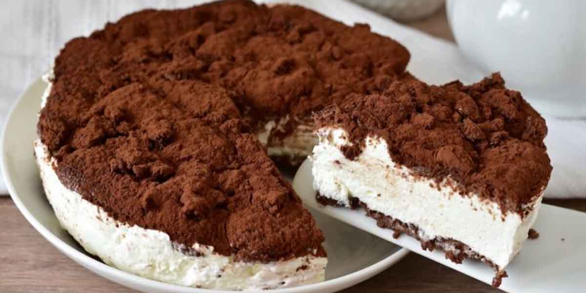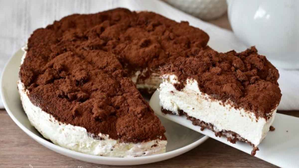 Togliete la pellicola e disponete la torta biscotto alla crema di latte su un piatto da portata.