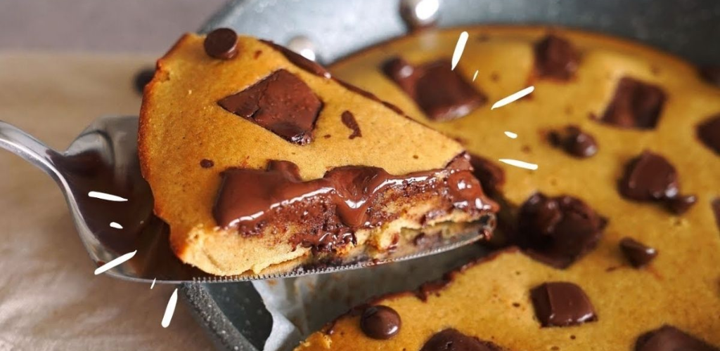 Versare il composto e aggiungere sopra le gocce di cioccolato fondente.
