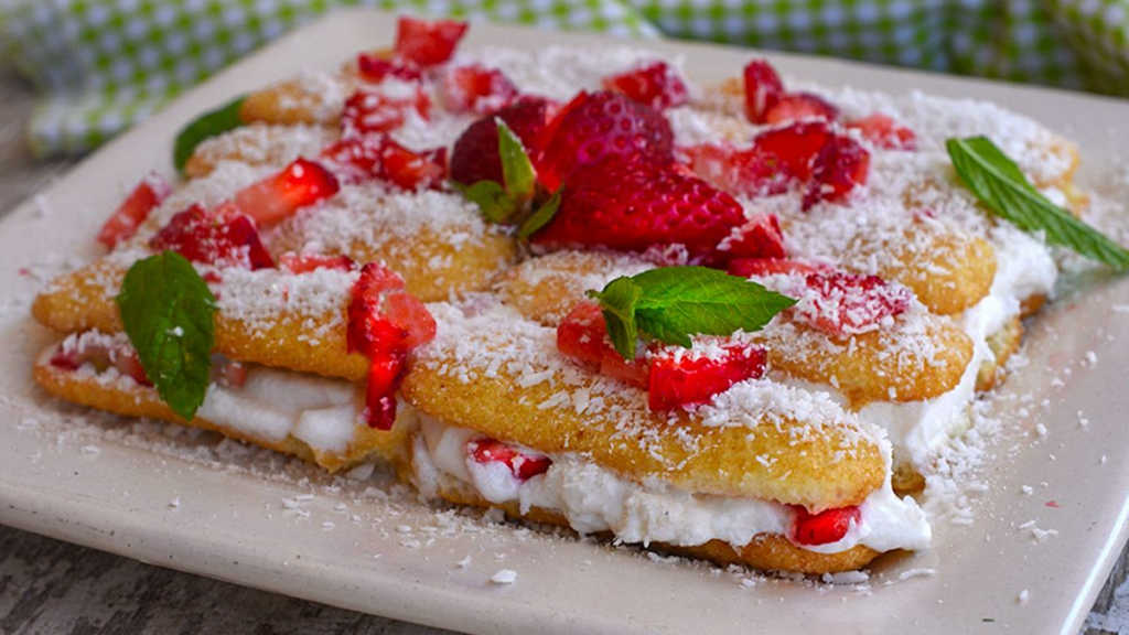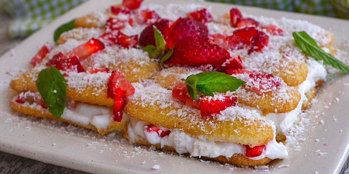 Come preparare la torta biscotto al mascarpone e fragole al cocco?