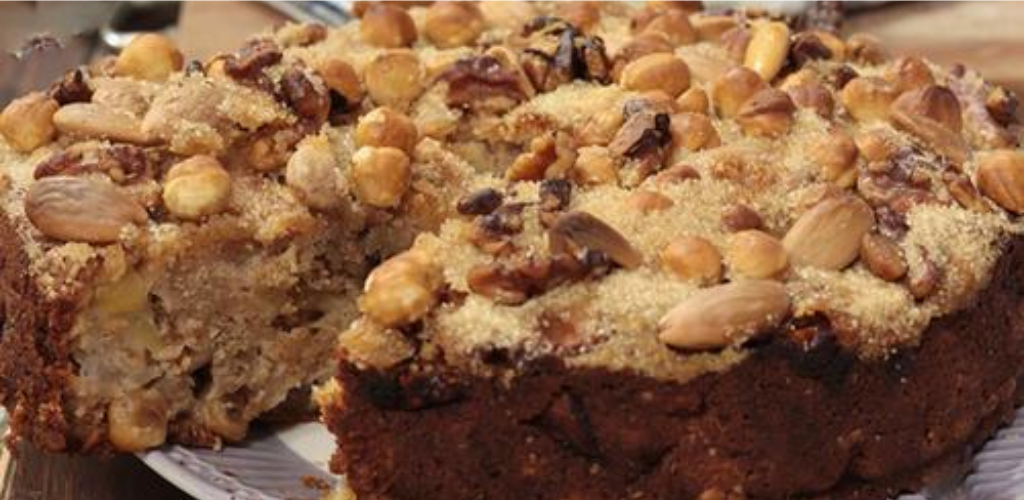 12. Decorate la superficie della torta con la frutta secca tritata e cospargetela di zucchero di canna