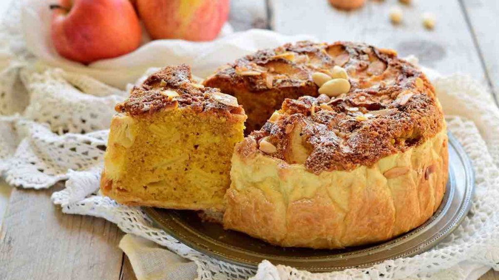 Aggiungere l’amaretto (o solo un po’ d’acqua). Mescolare bene. Infine aggiungete le mele sbucciate e affettate. Lasciare qualche fetta per decorare la torta. Aggiungere anche qualche fetta di mandorle a piacere. Versare il tutto sulla pasta sfoglia. Tagliare l’eccesso e chiudere un po’ i bordi sul ripieno.