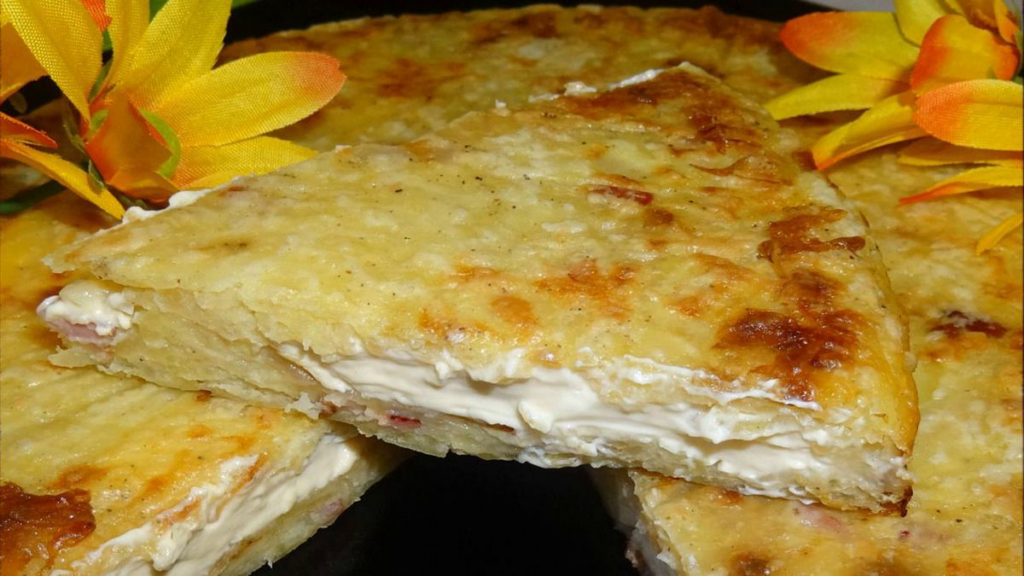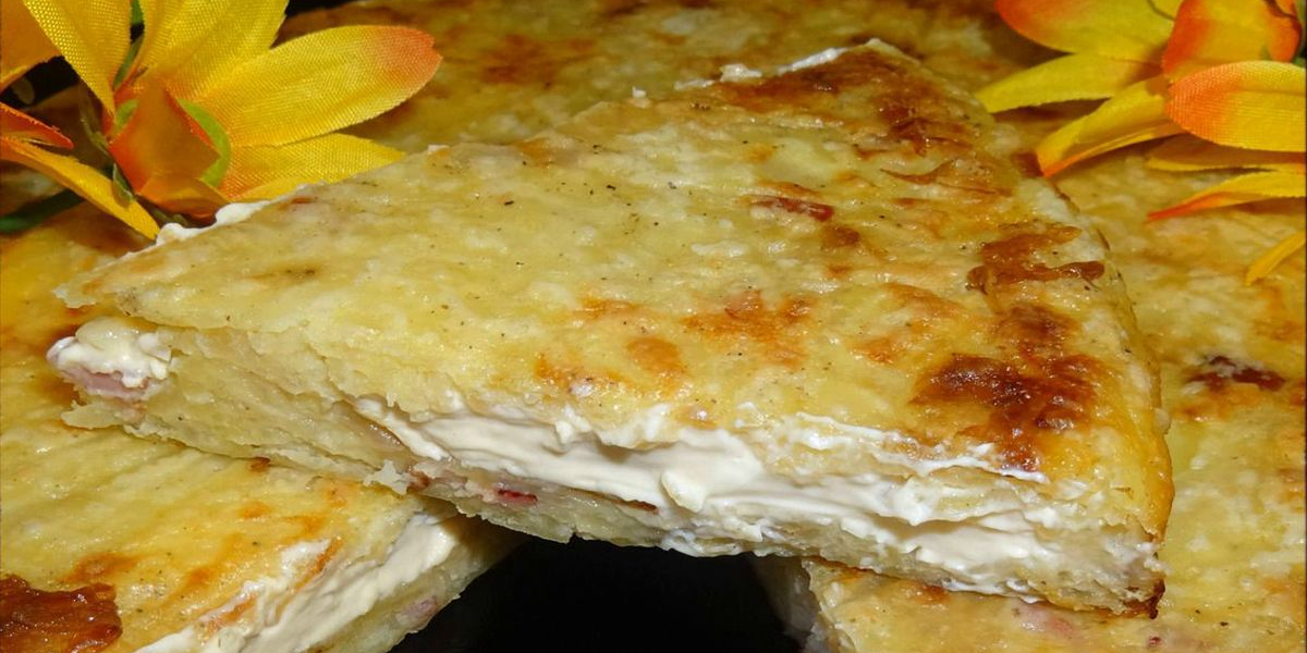 Come preparare la torta di patate ripiena di mucca che ride e pancetta?