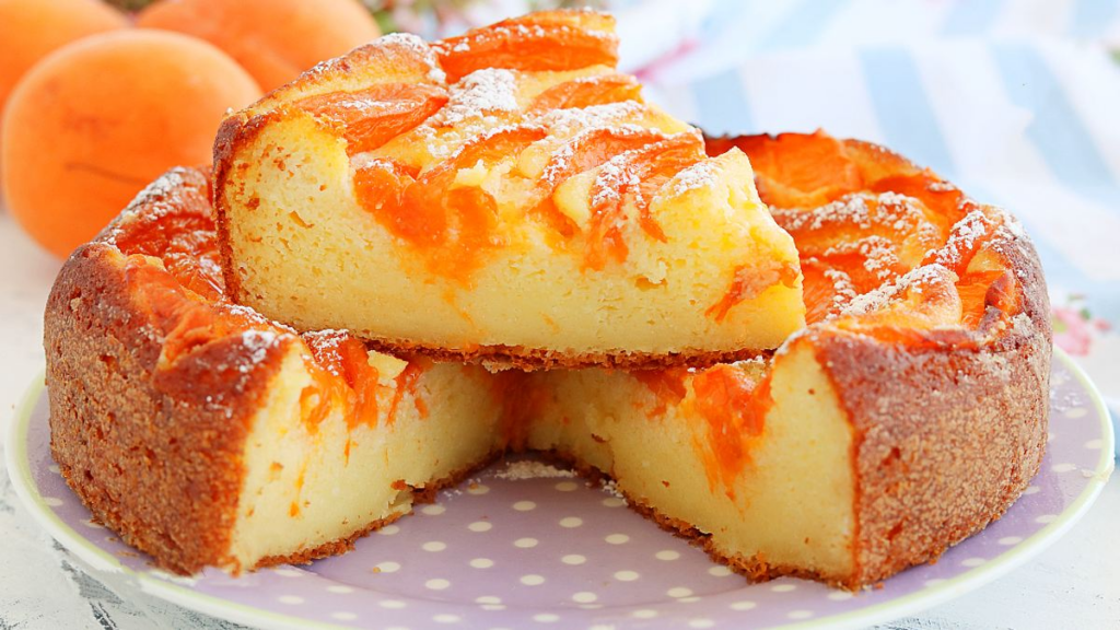 Tagliate le albicocche in quarti e disponetele sulla torta a raggiera.