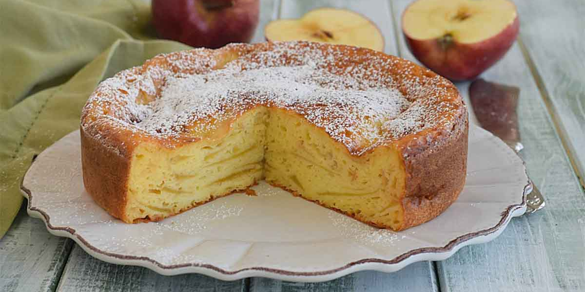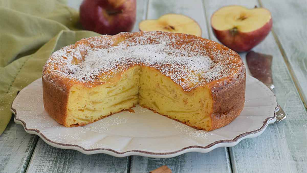 Spolverizzate con abbondante zucchero a velo e servite la torta invisibile di mele e ricotta.