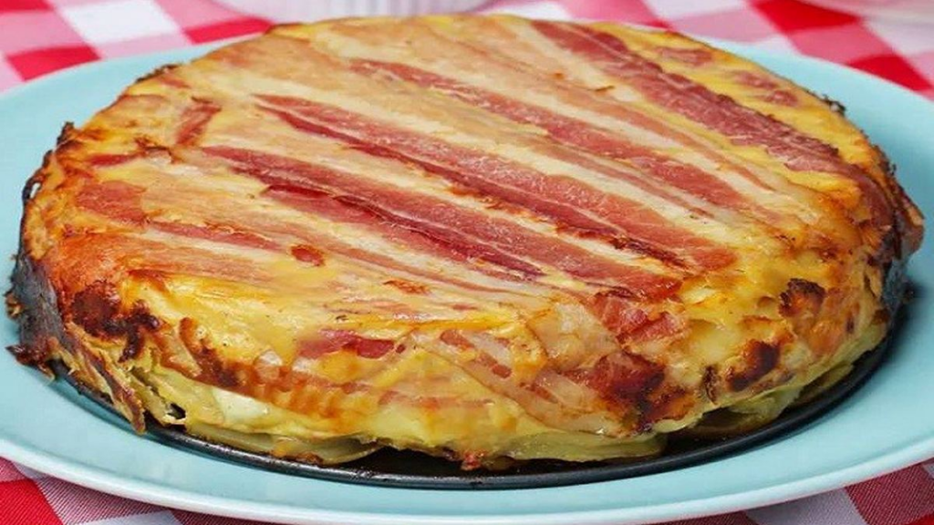 Torta invisibile di patate con pancetta e raclette