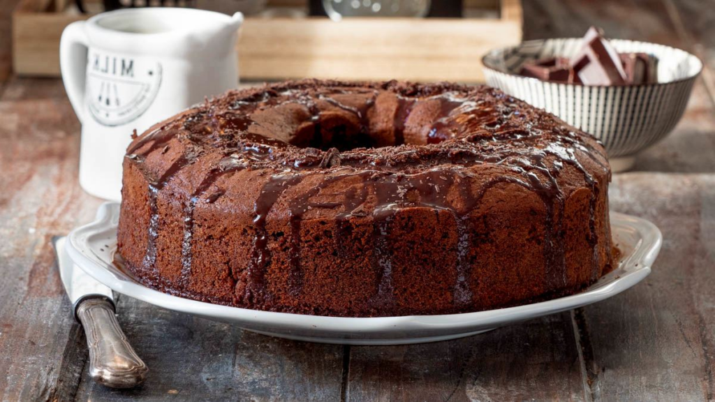 Versare il composto e livellare con una spatola. Cuocere in forno statico preriscaldato a 170° per 45-50 minuti. Fate la prova stecchino: se infilandolo nella parte più alta della ciambella esce asciutto, significa che la torta è pronta. Una volta che la torta si sarà raffreddata, toglietela con attenzione dallo stampo e posizionatela su un piatto.