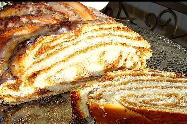 Ora, con attenzione (ma ancora strettamente) avvolgili l’uno attorno all’altro. Disporre le trecce risultanti in uno stampo unto (si consiglia una forma rotonda). Lasciare lievitare per altri 30 minuti finché l’impasto non sarà aumentato visibilmente di volume. Questo crea una ghirlanda come quella di una panetteria.