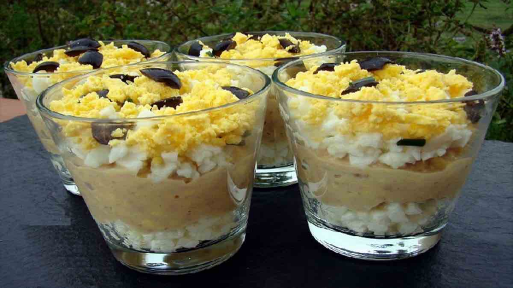 Distribuire metà degli albumi così preparati sul fondo dei bicchieri. Aggiungere poi il prosciutto tagliato a pezzetti, la metà dei tuorli (disperdendoli), poi ancora gli albumi e i restanti tuorli. Infine aggiungete un po’ di maionese. Una volta riempiti i bicchieri, metteteli in frigorifero fino al momento di servire. Le uova mimosa al prosciutto nel bicchiere sono pronte.