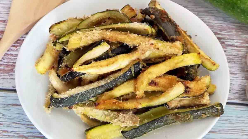 Lavate le zucchine, tagliatele a metà, poi ancora a metà nel senso della lunghezza e in 3 parti ancora nel senso della lunghezza in modo da formare dei bastoncini.