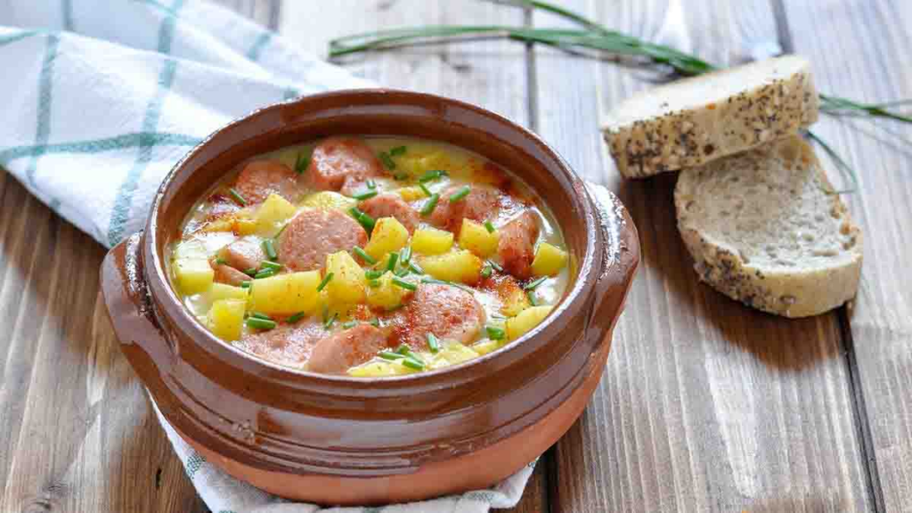 Dopo pochi minuti la zuppa di patate con salsicce sarà pronta.